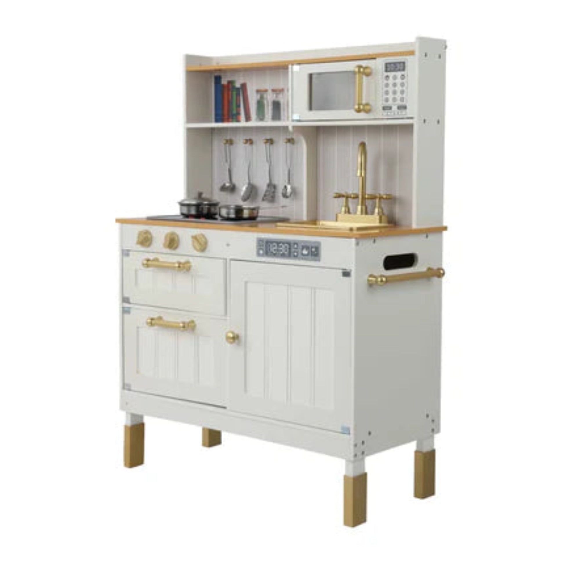 המטבח עשוי עץ בשילוב MDF איכותי, עם פלטות בעובי 12 מ"מ – עבות וחזקות יותר מרוב מטבחי המשחק בשוק.